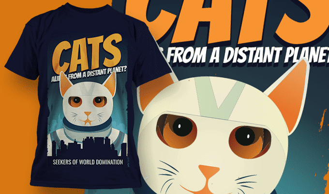 Cats - Aliens From Outer Space | T-Shirt Design Template 4055 | Designious