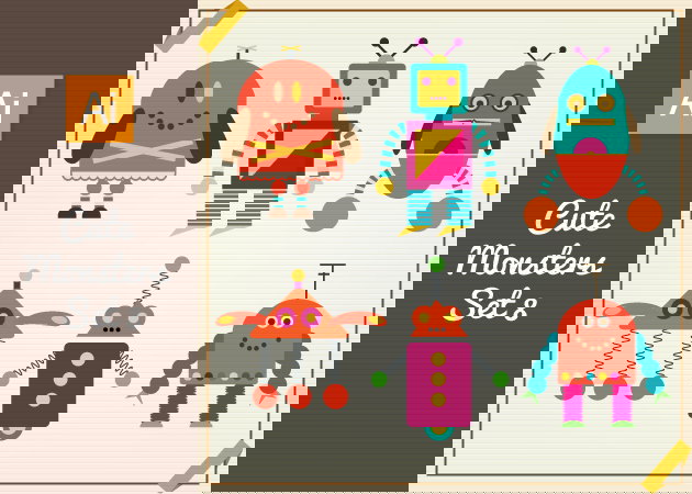 Cute Monsters Vector Set 8 | Designious