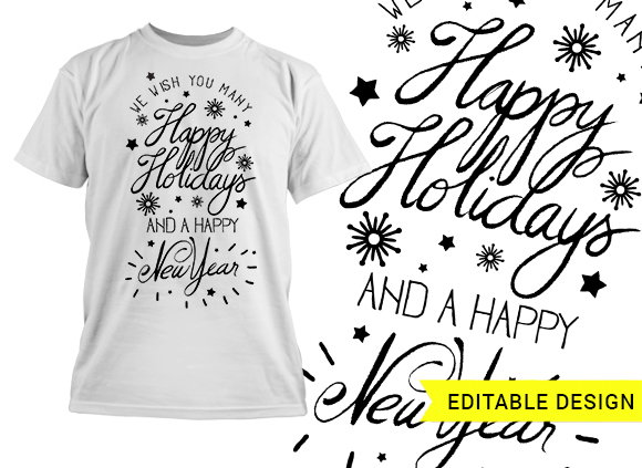 Happy holidays and a happy new year editable template T-shirt Design | Designious