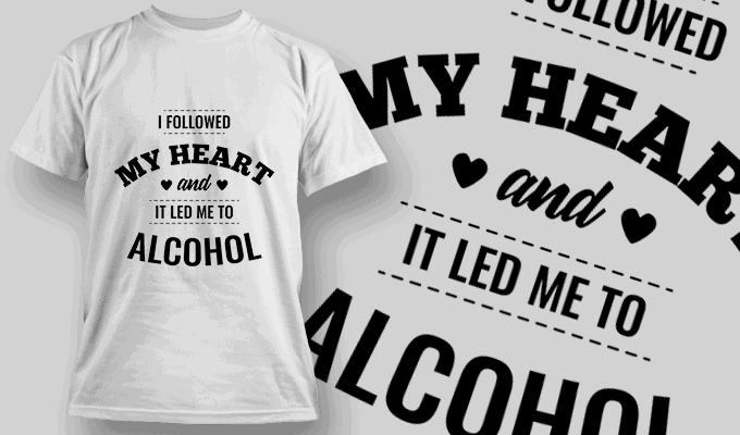 I Followed My Heart, It Let Me To Alcohol - T-shirt Design Template 2536