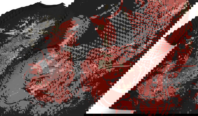 Koi carp silhouette and a grungy foreground T-shirt Design 565