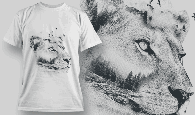 Lioness Double Exposure - T-shirt Design Template 2705 | Designious