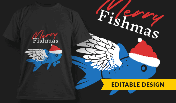 Merry Fishmas - Editable T-shirt Design Template 2413