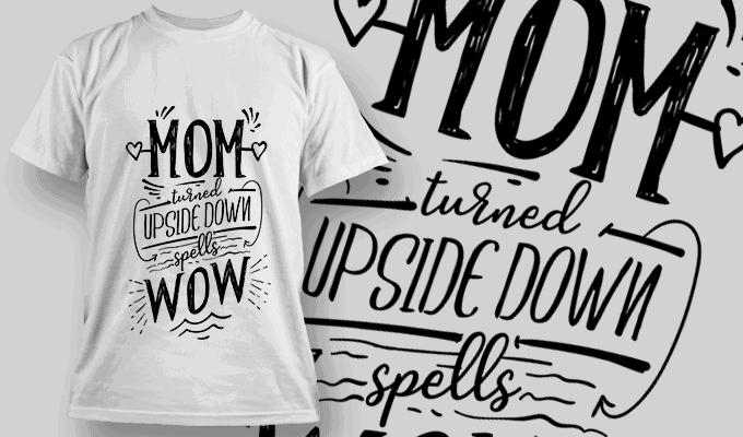 Mom Turned Upside Down Spells WOW - T-shirt Design Template 2556