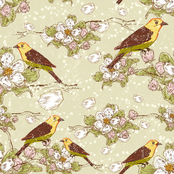 vector seamless floral background with birds